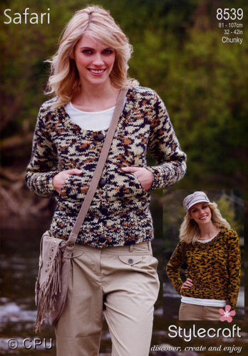 Stylecraft 8539 - Adult Cardigan and Sweater Knitting Pattern - 32-42 inches