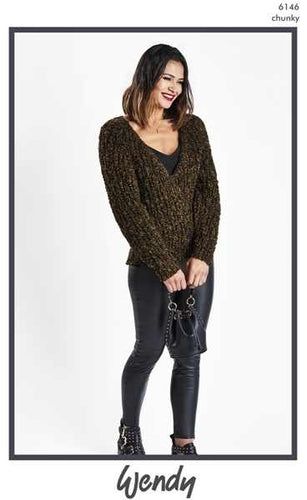 Wendy 6146- Adult V-Neck Sweater Knitting Pattern - 32-42 inches