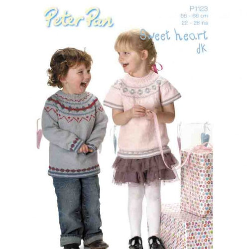 Peter Pan 1123 - Child's Long and Short Sleeved Jumper Knitting Pattern - 20 -26inches