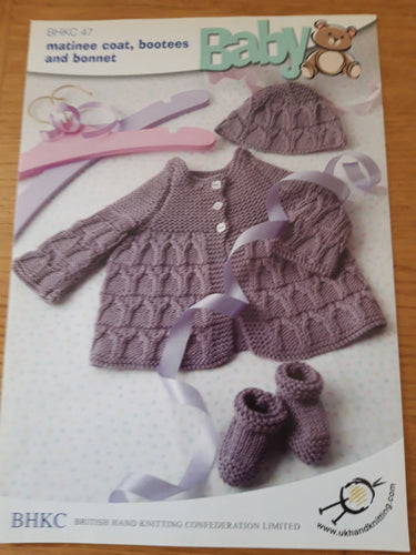 BHKC 47 - Baby 4 ply - Matinee Coat, Booties and Bonnet - 10"-18"