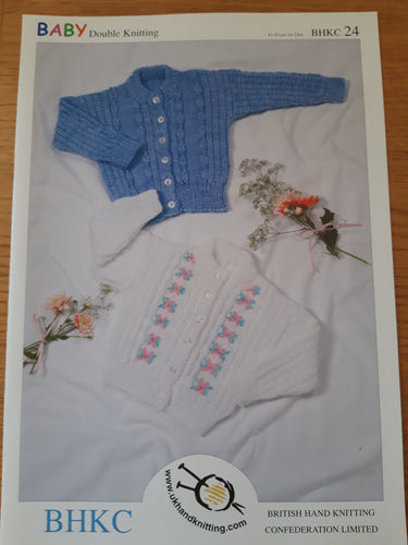BHKC 24 - Baby Double Knitting Pattern - Cardigan - 16"-24"